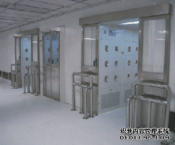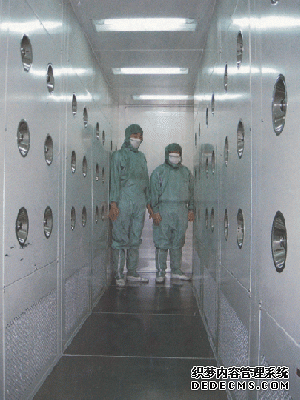 风淋室是人进入洁净室所必需的通道,它可以减少人进出洁净室所带来的污染问题。风淋室的两道门电子互锁,可以兼起气闸室的作用,防止未被净化的空气进入洁净室,降低人员出入洁净室过程中尘埃对洁净室的污染。当人员进入风淋室后,高速洁净气流经高效过滤后由可旋转喷嘴从各个方向喷射到人身上,有效而迅速清除衣着所携带的尘埃粒子。