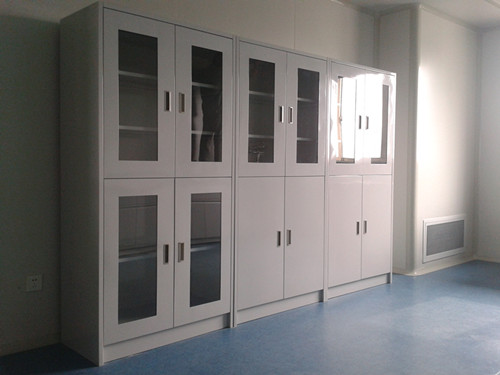 药品柜箱体:主体结构采用固定式金属柜体直接支撑台面。药品柜柜体采用1.2mm厚优质冷轧钢板,柜体内设活动搁板,搁板采用1.2mm厚优质冷轧钢板,外经酸洗磷化后环氧树脂静电粉沫喷涂。